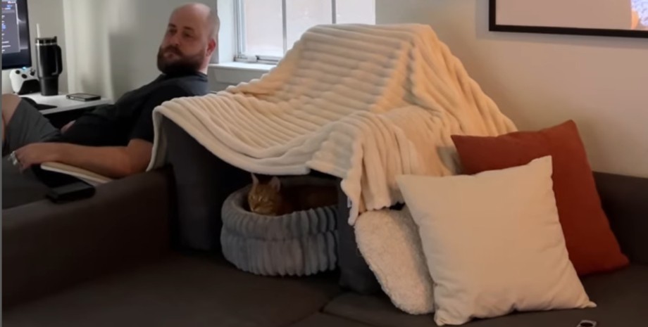 Вірусне відео за участю кота на прізвисько Багз і його турботливого господаря розтопило серця тисяч користувачів Instagram. На кадрах, опублікованих користувачем @lauren_syndi, рудий вихованець затишно влаштувався в імпровізованій "фортеці" на дивані.