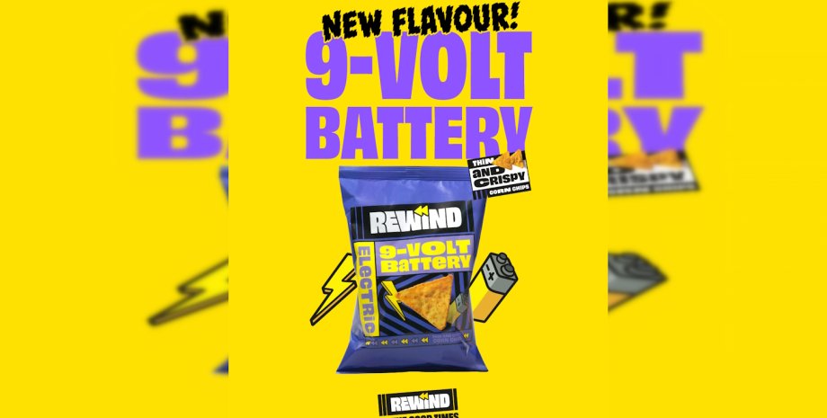Бренд Rewind випустив чіпси зі смаком 9-вольтової батарейки, прагнучи відтворити одне з найдивніших дитячих вражень