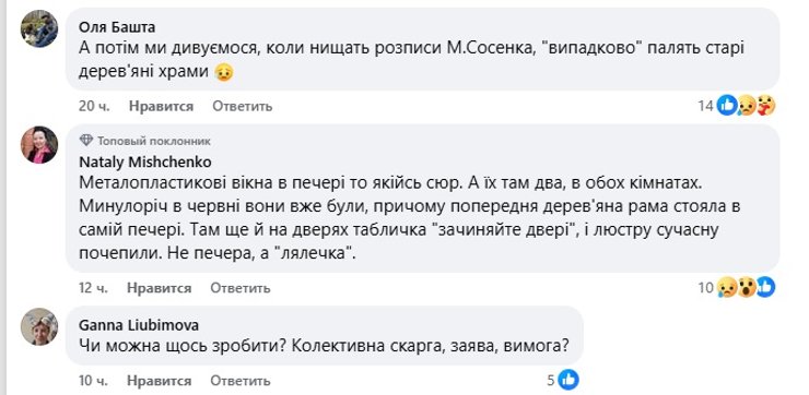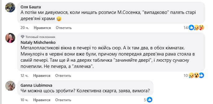 "Варто зазначити, що таке "поліпшення" не тільки спотворило зовнішній вигляд стародавньої пам'ятки, а й серйозно впливає на стан її збереження. Печера не є герметичною і в неї постійно потрапляє волога. Вікна давали можливість хоч якоїсь вентиляції. Зараз стіни вкриті товстим шаром плісняви та грибниці — навіть гриби на них ростуть".
