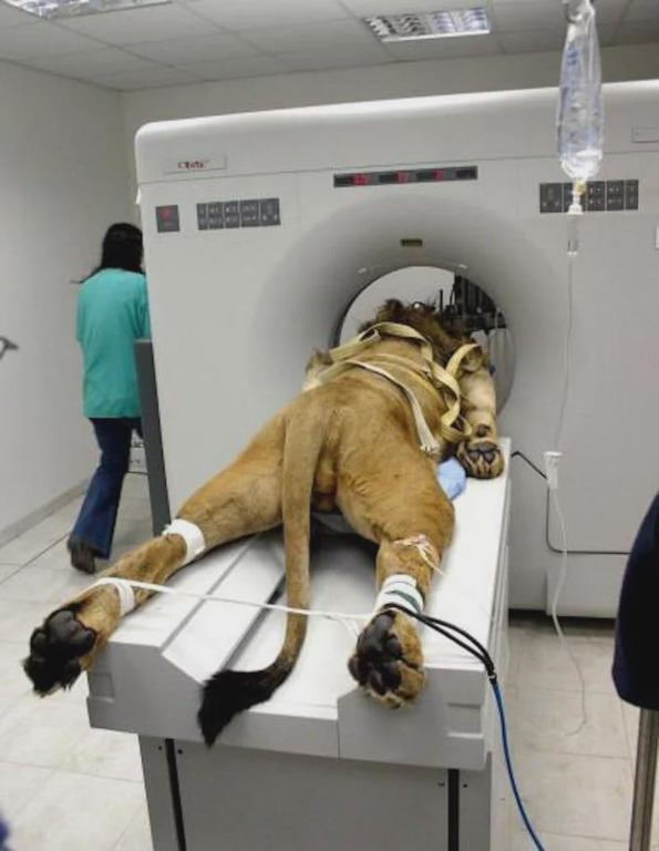 Однак експерти швидко встановили факт підробки. Виявилося, що оригінальна світлина була зроблена на початку 2000-х років в одному з зоопарків Ізраїлю, коли дворічного берберського лева з кличкою Самсон відправили на комп’ютерну томографію (КТ) після того, як він занедужав.