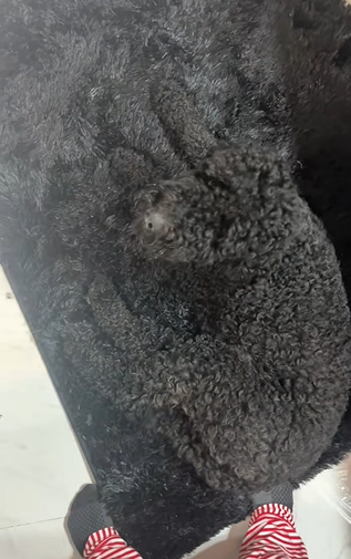 Однак коли жінка починає рухати камерою, збільшуючи зображення пухнастого килима, раптом на ньому щось заворушилося. З'ясувалося, що це її улюблениця — собака з чорною шерстю породи голдендудль.