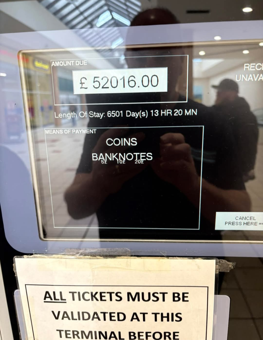 На фото можна побачити, як паркомат виставив британцю "космічний" рахунок за паркування. Але особливо користувачів розважила деталь: автомат приймає оплату лише монетами та банкнотами по £5, £10 та £20.