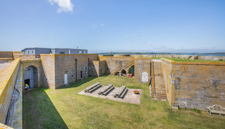 Покинутий форт XIX століття на острові Торн з облаштованим двором і місцем для гостей
