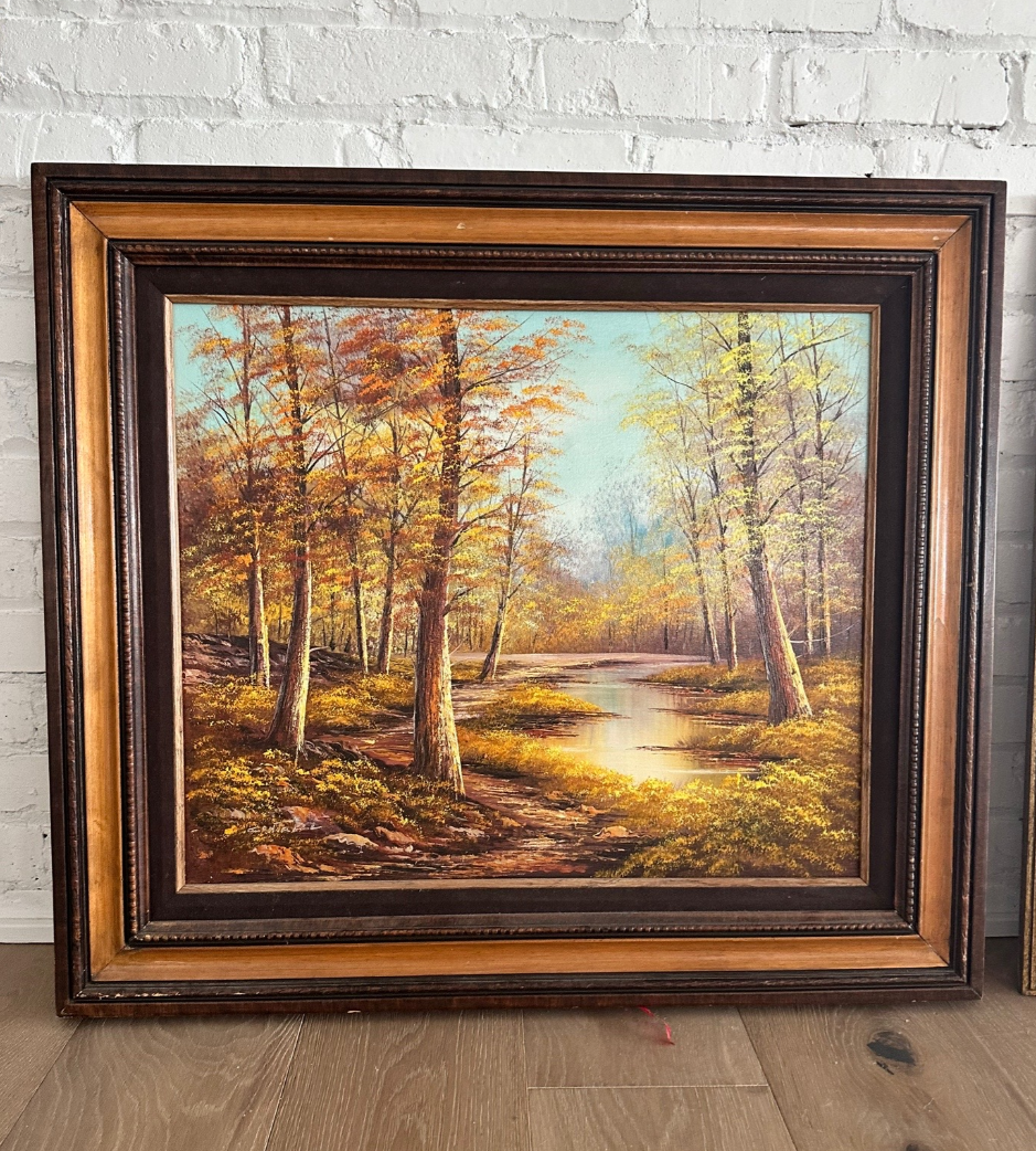Старовинна картина з осіннім лісовим пейзажем і річкою, знайдена в стінах будинку в Мічигані
