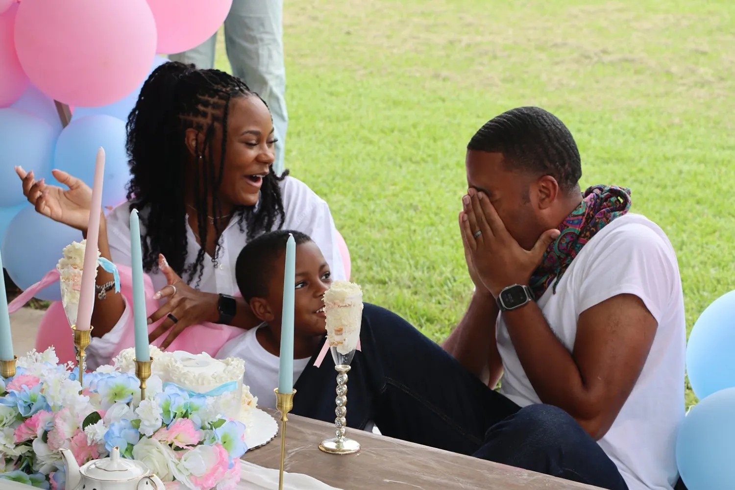 Її чоловік, звісно, нічого не підозрював про майбутню стать дитини. Коли Майкл зняв пов’язку, то побачив не лише родичів з Атланти, а й сім’ю з усієї країни — та ще й телевізійну камеру. Навіть Жоакія не знала, що її мати запросила місцеву знімальну групу.
