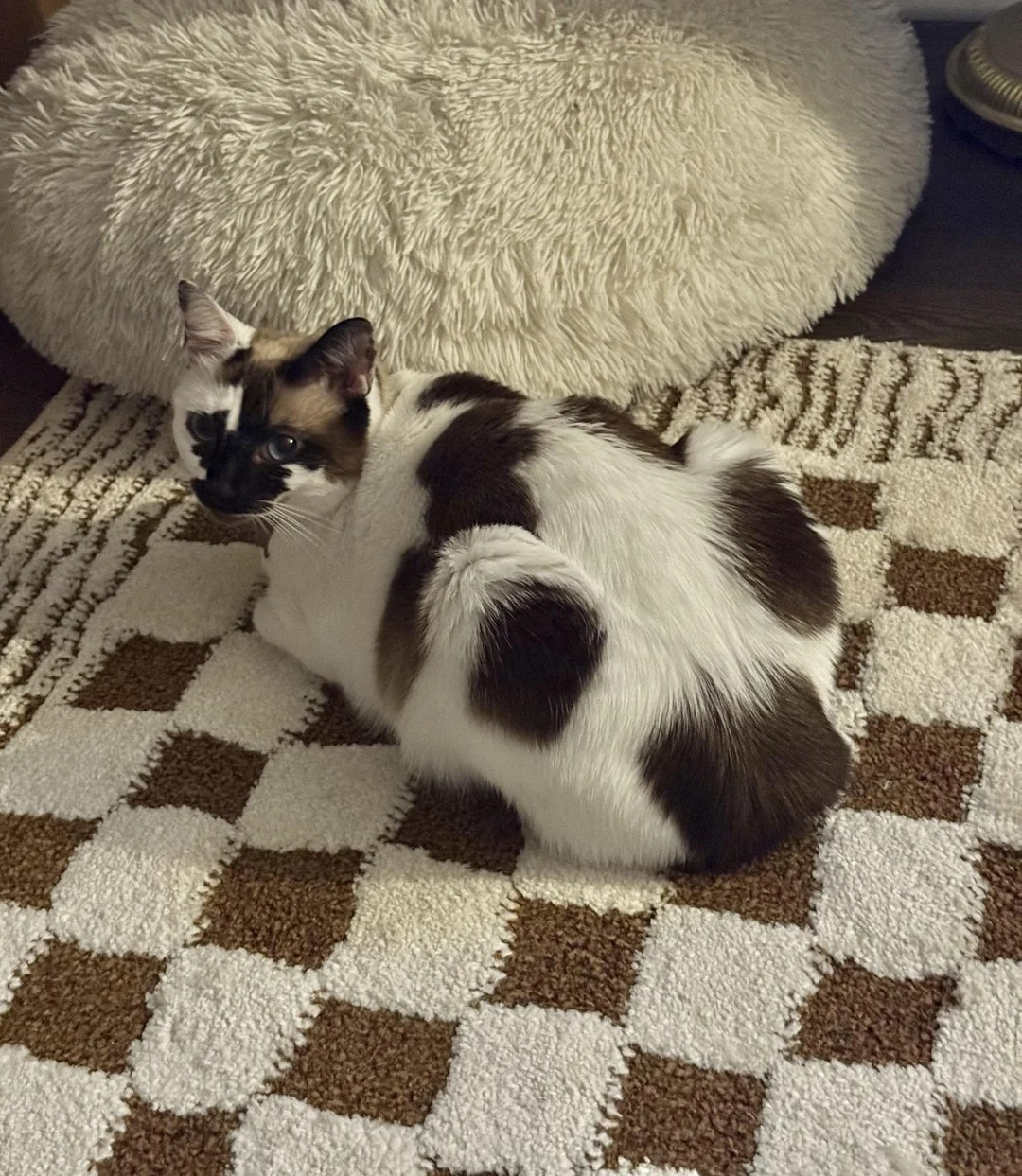 Повідомлення користувача платформи виявилося популярним — набрало понад дві тисячі реакцій. На оприлюдненому фото можна побачити, як кішка власника лежить на ковдрі в вигляді шашечок.