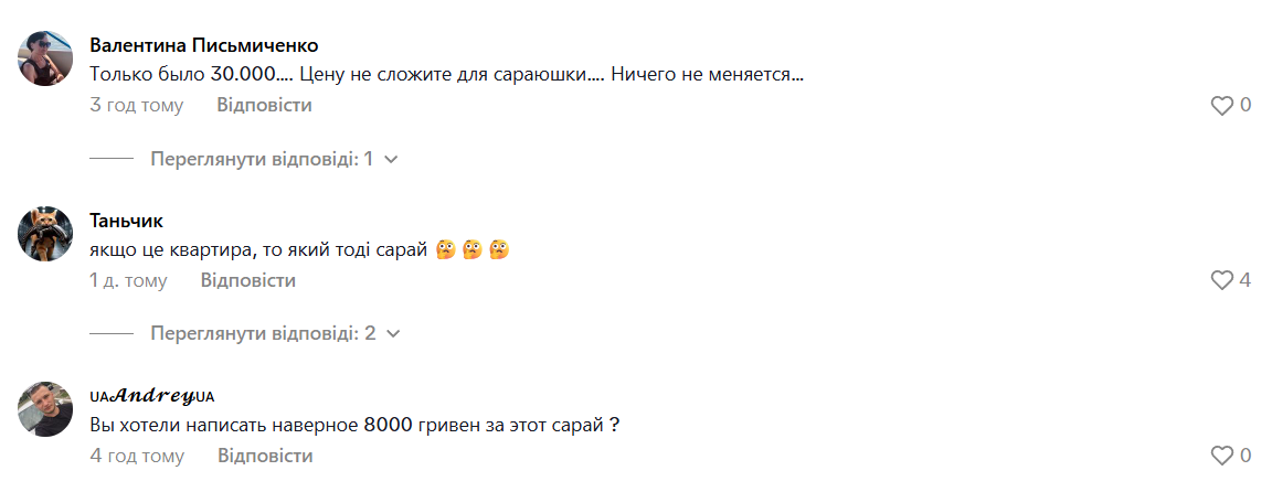 "Ви хотіли написати, напевно, 8000 гривень за цей сарай?", — написав один із користувачів.