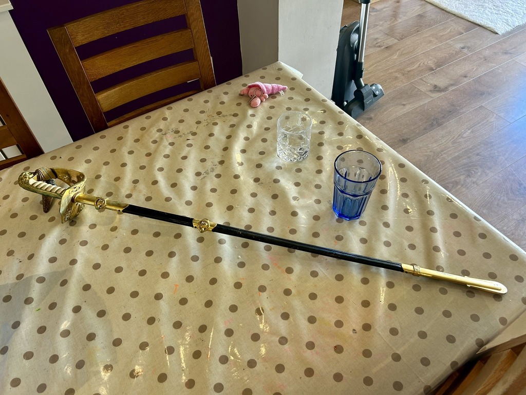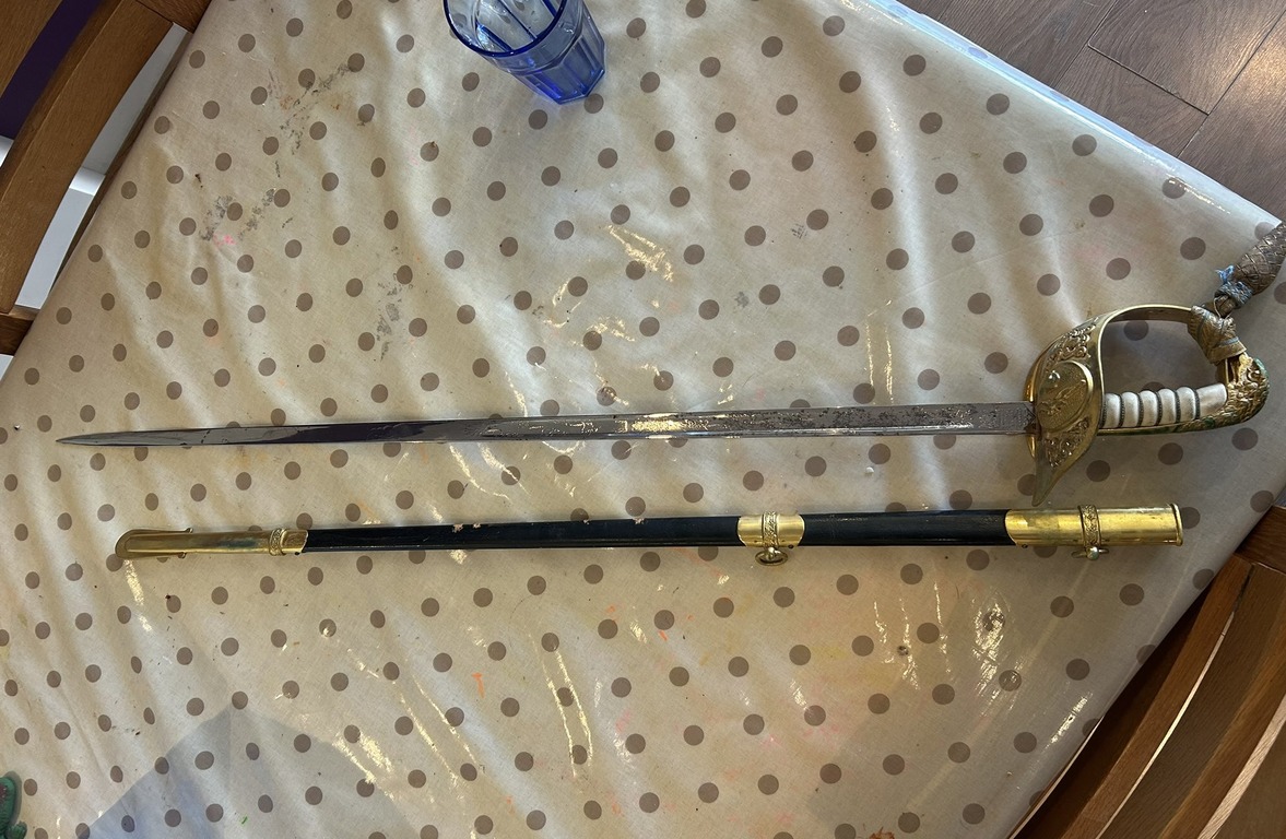 • "Це церемоніальний парадний меч офіцера Королівського флоту — у мене такий є для мого парадного однострою No.1. Вони недешеві, тож це справді гарна знахідка!";