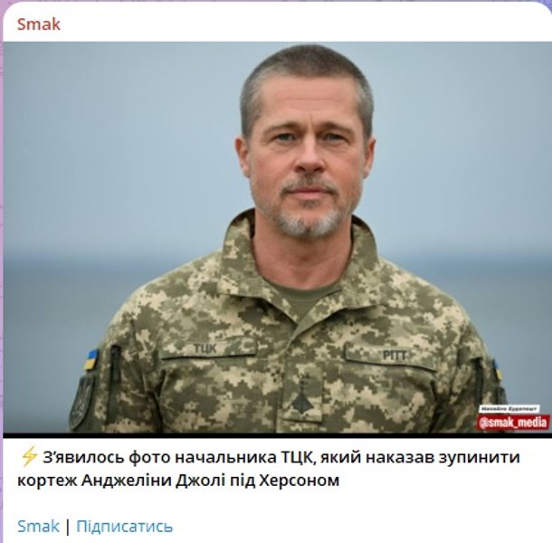 У командуванні Сухопутних військ Збройних сил України повідомили, що це сталось 4 листопада під час перевірки осіб на блокпосту біля міста Південноукраїнськ. А потім поінформували, що під час перевірки з'ясовано, що громадянин є офіцером запасу, підтверджених підстав для відстрочки від мобілізації не має. І нині громадянин П. готується до військової служби за мобілізацією. Це і стало приводом до мемів із Джолі та її колишнім чоловіком Бредом Піттом.