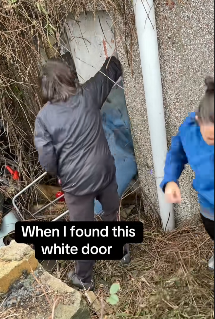 Під час розчищення задньої частини ділянки вона помітила зарослі білі двері, заховані під ожиною і чагарниками. Цікавість пересилила і разом зі своєю свекрухою вона вирішила відкрити їх.