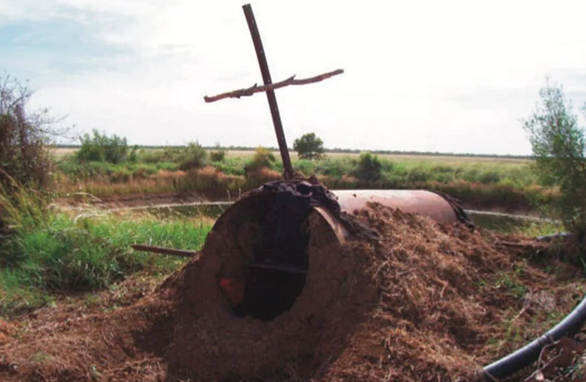Місце в пустелі Танамі з металевою трубою, схоже на укриття, де перебував Рікі Мегі