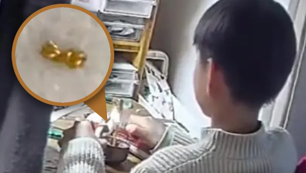 Матері хлопчика, жінці на прізвище Сан, розповіли про дивний подарунок її сина в школі. Донька почула, що один з учнів хвалився золотим шматочком, який отримав від її брата. Після цього батьки переглянули записи відеоспостереження вдома і побачили подробиці. На кадрах хлопчик відчиняє мамину шухляду, дістає прикрасу, намагається розкусити її плоскогубцями, підпалює запальничкою і врешті-решт починає розгризати ланцюжок зубами, щоб поділити його на частини.