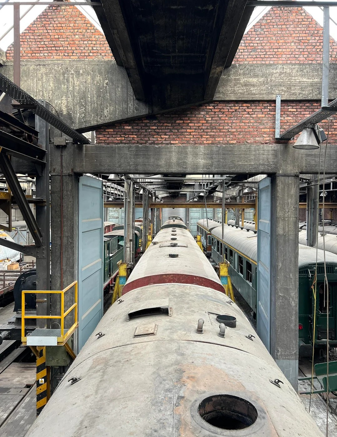 Самі машини та вагони вкриті іржею, графіті та пилом, а деякі з них — частково розібрані або пошкоджені. За словами дослідника, ангар колись слугував ключовим залізничним вузлом, де зберігали й обслуговували рухомий склад.