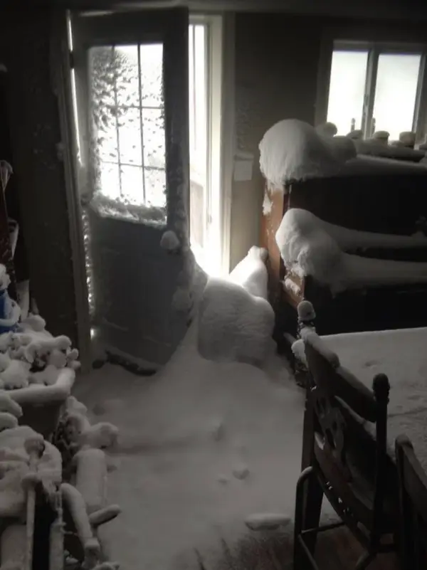 В наступній історії чоловік розповів, що не зачинив двері свого будиночка в зимову погоду на ніч. Як наслідок, буревій та хурделиця дещо видозмінили інтер'єр дома, коли зранку власник виявив вплив холодної пори року.