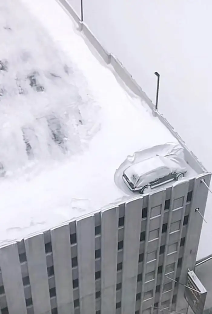 На першій світлині можна побачити парковку на даху будинку, де автомобіль буквально замело під саму вершину транспортного засобу. У мережі писали з гумором, що сніг замів авто так, що вона тепер виглядає як десерт "тірамісу на колесах". Подальша доля цього транспорту залишилася невідомою.