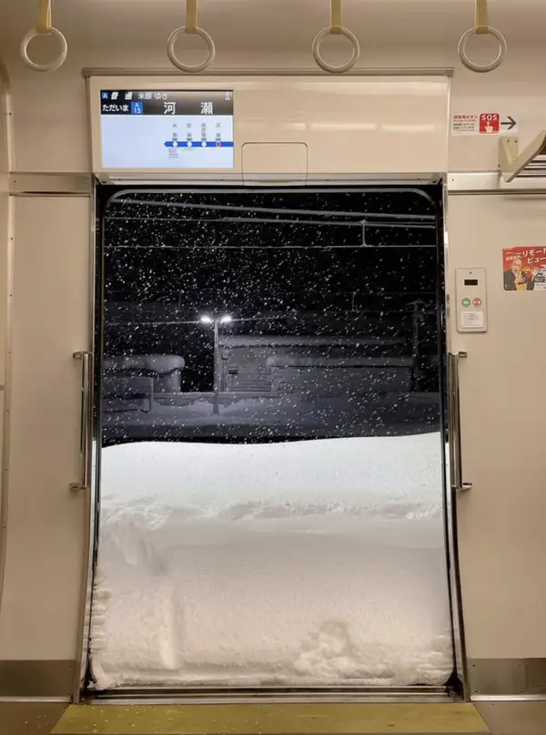 Чергове вітання від природи показав мешканець Японії. Чоловік на потязі мав виходити на своїй зупинці, але виявилося, що випала така кількість снігу, через яку буде доволі проблематично вийти на платформу цієї станції.