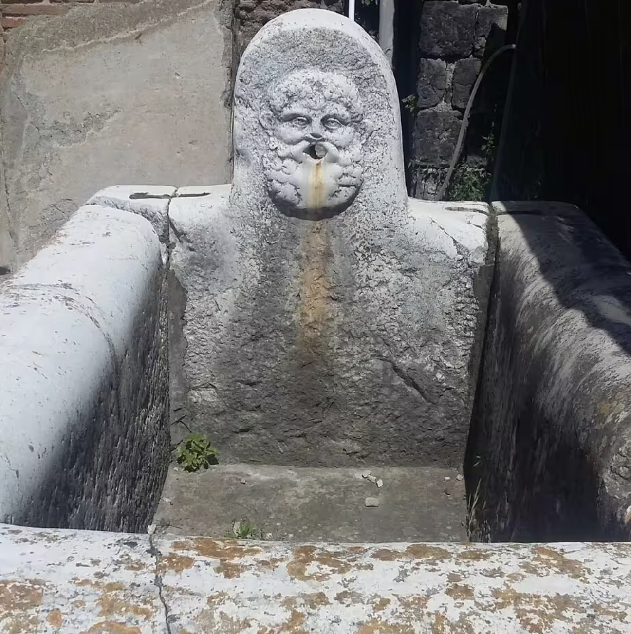 Стародавній кам'яний фонтан із різьбленим обличчям у Геркуланумі, що зберігся з часів Римської імперії
