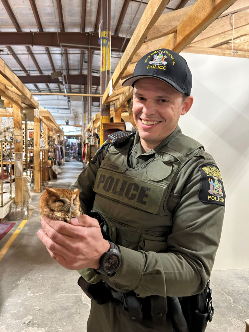Офіцери природоохоронної служби прибули на місце й виявили коричнево-білу сову, що сиділа на полиці із заплющеними очима. Правоохоронці обережно взяли птаха на руки, винесли з магазину та випустили в лісистій місцевості, де він перелетів на сусіднє дерево.