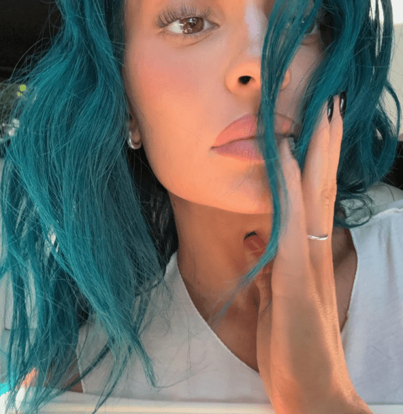 У каруселі фотографій і відео Дженнер крупним планом показала своє волосся, пофарбоване в темно-бірюзовий колір. Вона лаконічно підписала пост: "Симпатичний кінець часу".
