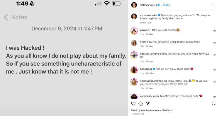 "Тіна випадково поставила лайк під постом і швидко видалила його, щойно близькі друзі вказали їй на помилку. Вона знає Джея відтоді, як йому було за 30, і не вірить, що він здатний скоїти такий злодійський злочин. Вона підтримує Бейонсе і підтримає будь-яке її рішення", — повідомив він.