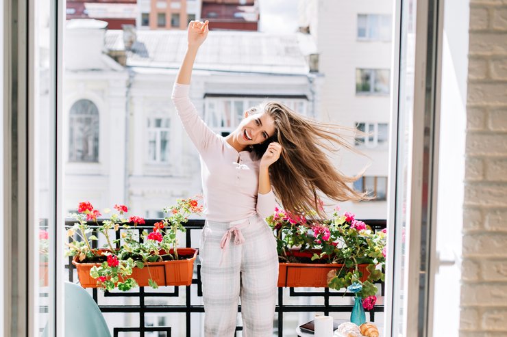 Якщо у вас є просторий балкон або тераса, знайдіть час, щоб прогулятися вранці й отримати трохи сонячного світла, тим самим збільшуючи кількість кроків. Під час прогулянки обов'язково прислухайтеся до чарівних звуків птахів і спостерігайте за тим, що відбувається довкола, щоб відволіктися від метушні та зарядитися позитивною енергією.