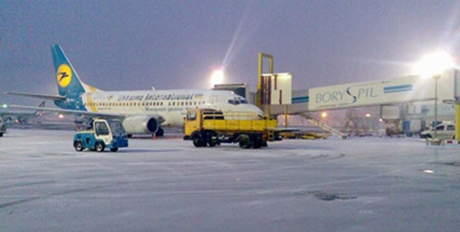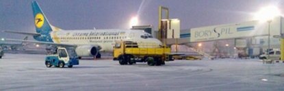 По информации пресс-службы Министерства транспорта и связи Украины, в данное время ведется очистка взлетно-посадочных полос от снега.