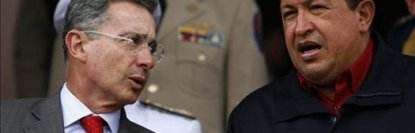 Чавес и Урибе устроили словесную перепалку во время рабочего обеда в понедельник, после того, как президент Колумбии сравнил нынешнее положение торговых отношений между Боготой и Каракасом с американским торгово-экономическим эмбарго против Кубы, а президент Венесуэлы с ним не согласился.