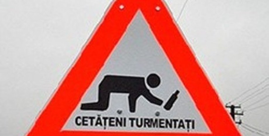 Следуя опыту Германии власти румынского городка установили знаки, на которых изображен ползущий на четвереньках человек с бутылкой в руке