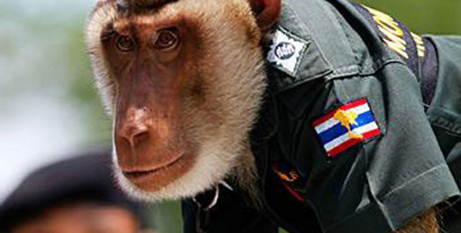 Таиландские стражи порядка ходят на работу в сопровождении служебной макаки
