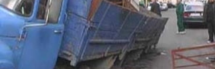В Киеве грузовик ушел под асфальт