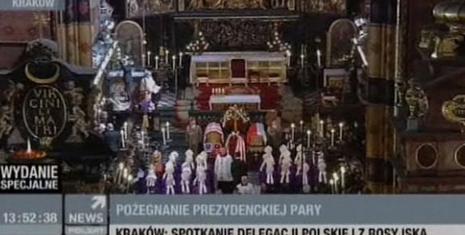 После окончания церемонии, которую транслирует Первый национальный телеканал, президентская чета Качиньских будет похоронена в королевском замке Вавель на берегу Вислы.