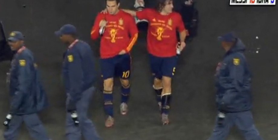 На сайте YouTube выложена видеозапись того, как Пуйоль и Фабрегас выходят из подтрибунного помещения на поле стадиона в Йоханнесбурге с бутылками пива в руках. Когда игроки сели на скамейку запасных, к ним подбежали болельщики и стали фотографироваться.