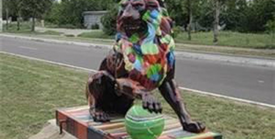 В Луганске на улице Буденного установили памятник "Писанковый лев", расписанный яркими красками, наподобие пасхального яйца