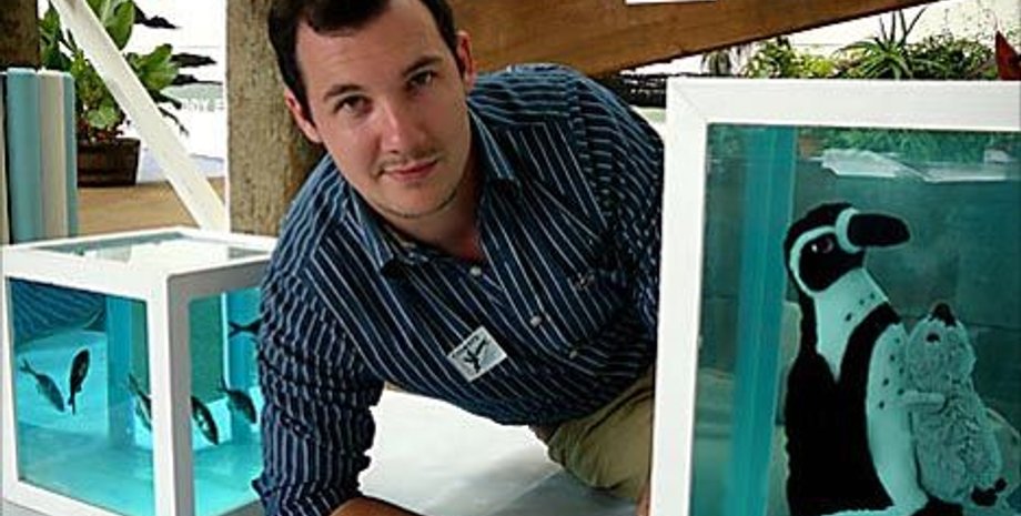 Созданная в Торквее композиция называется "Разделенные пингвин и еда" (Penguin and Food Divided), пишет Лента.Ру со ссылкой на The Art Newspaper. В одном аквариуме законсервированы африканский пингвин и его птенец, в другом - рыбки, основная пища пингвинов. При этом, в отличие от работ Херста, ни одно живое существо не пострадало - при создании произведения были использованы игрушки.