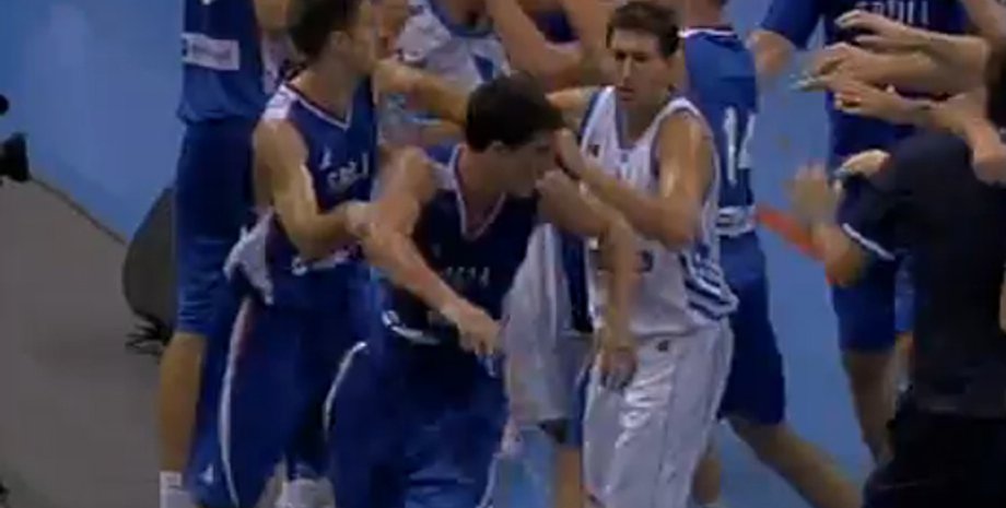 Товарищеский матч на баскетбольном Кубке Акрополя завершился дракой между игроками сборных Сербии и Греции