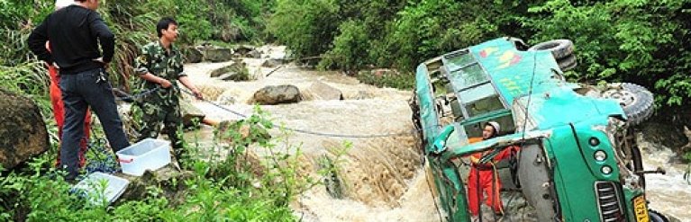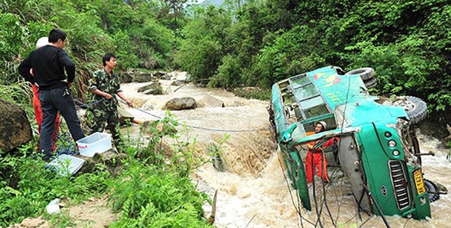 В Тайване три автобуса упали в пропасть с размытой дождями дороги