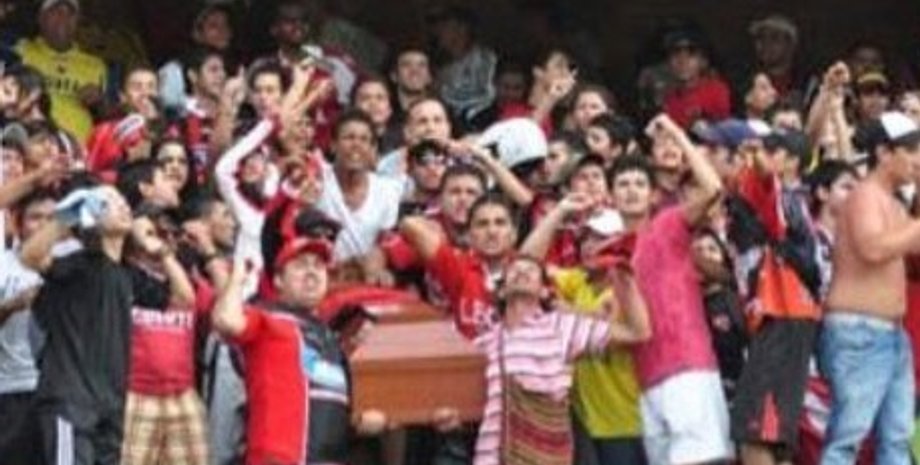В Колумбии друзья принесли гроб с мертвым фанатом на футбол