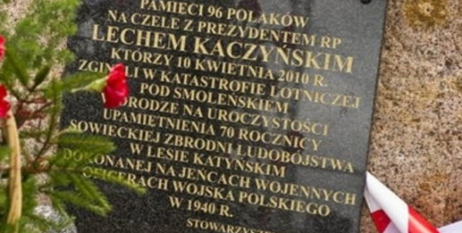 Напомним, польский вариант мемориальной доски поставили на месте крушения самолета под Смоленском родственники погибших в авиакатастрофе.