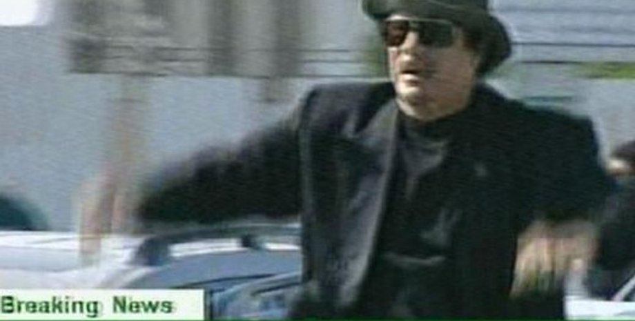 На них видно, что ливийский лидер, одетый в темную одежду,находится в черном внедорожнике с открытым верхом. Он стоя приветствует своихсторонников. Автомобиль окружили десятки людей. В руках у них портреты Каддафии зеленые флаги, символизирующие правящий режим. Жители Триполи кричат лозунги,прославляющие лидера. Каддафи в ответ жестикулирует, показывая пальцами знак V- "виктория".