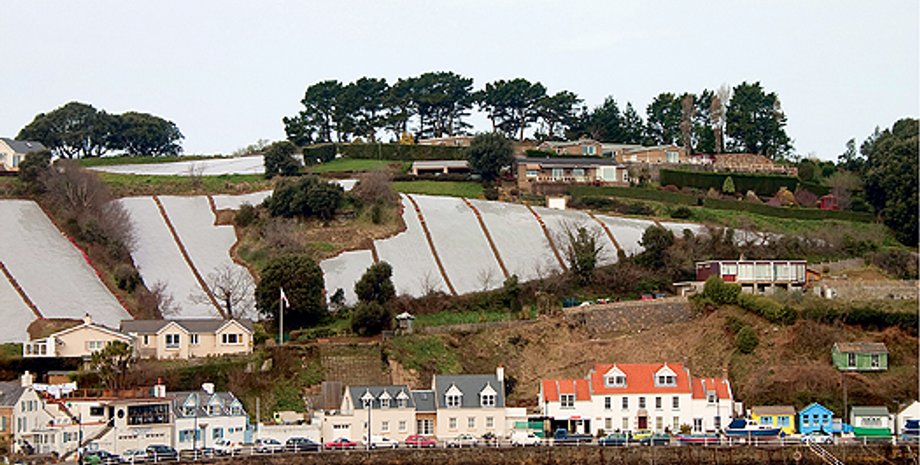 Картофель на острове тоже уникальный, и тоже ценится далеко за его пределами. Выращивается он с традиционной британской аккуратностью и педантичностью. Весной все поля закрывают полиэтиленовой пленкой. Края вкопаны в землю, поверхность усеяна круглыми дырочками для вентиляции, лента идеально натянута и блестит под солнцем – удивительное зрелище.
