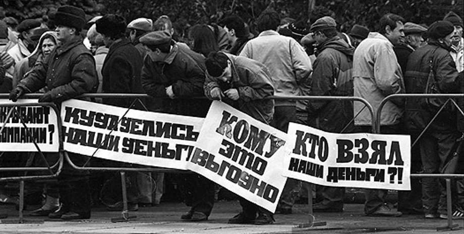 Леня Голубков с его навязчивым желанием купить жене сапоги на деньги, вложенные в "МММ". "Отличная компания" "Хопер-инвест", воспетая Лолитой Милявской и Александром Цекало. Мультяшный аист, под романтическую музыку кружащий над крышей "Русского дома Селенга". Жители стран СНГ, чей сознательный возраст пришелся на начало 90-х, едва ли смогут забыть рекламные ролики тех лет, прославляющие плоды финансовых афер. Замаскированные под солидные коммерческие учреждения шулеры ловили легкую добычу – люди выстраивались в очереди, чтобы отдать им деньги. Волна увлечения компаниями, принимавшими вклады от населения под нереально высокие проценты, не обошла стороной и Украину.