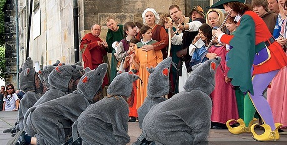 На этой простой сказке построена огромная туристическая махина. Крысолов водит экскурсии по городу и окрестным горам; он же появляется в городских часах в полдень; каждое воскресенье представление по мотивам сказки показывают туристам у ратуши; а крысы разных форм, цветов и форматов прямо-таки наводнили город.