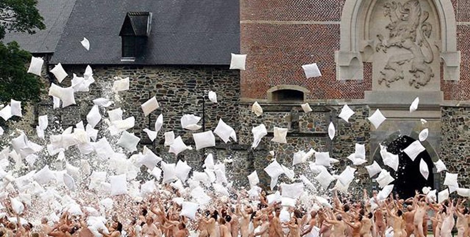 800 голых мужчин и женщин дрались подушками в старинном замке