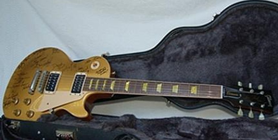 Золотая гитара Gibson модели Les Paul, корпус которой покрыт автографами известных исполнителей джаза и блюза, будет выставлен на благотворительный аукцион