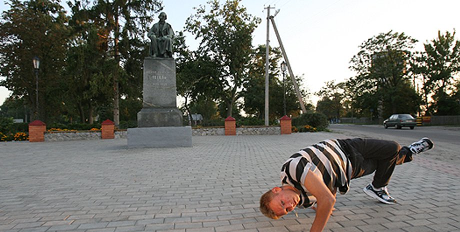 Вокруг памятника Гоголю в центре села наматывает круги мужчина. "Что ж ты облез так, Никоша, хвантазер ты наш", – работает на публику он. Две женщины без возраста не реагируют. "Ремонтировать Никошу когда будут, я спрашиваю?" – все не угомонится он. "Покы рано – слишком красывый. Ще трохы облизэ и одреставрируем", – на суржике, которому позавидовала бы Верка Сердючка, отвечают дамы.