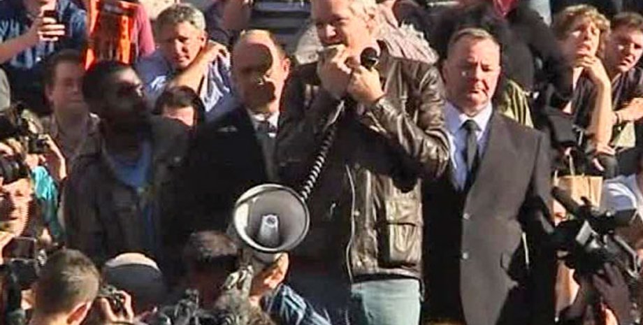 Как передают Вести, Ассанж обратился к участникам акции с речью, обвинив банкиров и политиков в коррупции.