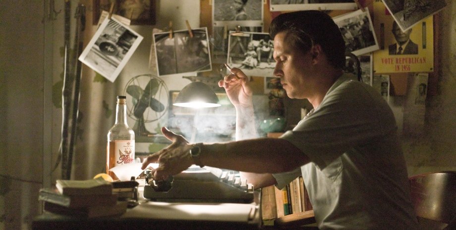 Английский режиссер Брюс Робинсон ("Дженнифер 8") сам писал сценарий и не пощадил первоисточник: вырезав ключевых героев, перенес действие на два года позже, изменил название газеты, прописал свои монологи. "Ромовый дневник" в экранной версии крушит стереотип о Томпсоне, которого принято представлять исключительно как хулигана и алконаркоромантика. Робинсон весь фильм мечет остросоциальные копья: фокусируется на уличных беспорядках, устраивает показательную порку американскому империализму, единственный намек на эротическую сцену демонстративно обрывает аудиозаписью речи Гитлера. Не экономил он и на сочинении афоризмов: "Либерал – это человек с высшим образованием и нигерским мышлением" и "С коммунистами можно договориться, только уничтожив их" запоминаются сами собой. Робинсон не оставляет сомнений в том, с кем он: ближе к финалу на лице Деппа все четче проступают черты Мальчиша-Кибальчиша, а массивные силуэты толстосумов складываются в коллективный портрет дяди Сэма. В какой-то момент думаешь, уж не левые ли партии финансировали съемки: сцена, где об устройстве мира вещает лангуст, тянет на шедевр сюрреализма с коммунистическим лицом.