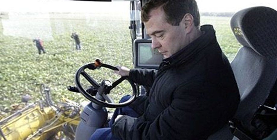 Напомним, в октябре 2009 года Медведев был с рабочей поездкой в Орловской области, побывал на поле, где выращивали сахарную свеклу, и тоже лично поучаствовал в уборке урожая: поднялся в кабину комбайна и, выполняя инструкции комбайнера, проехал по полю несколько сотен метров.