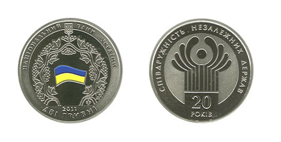 Завтра будет введена в обращение памятная монета "20 лет СНГ" номиналом 2 гривны из нейзильбера