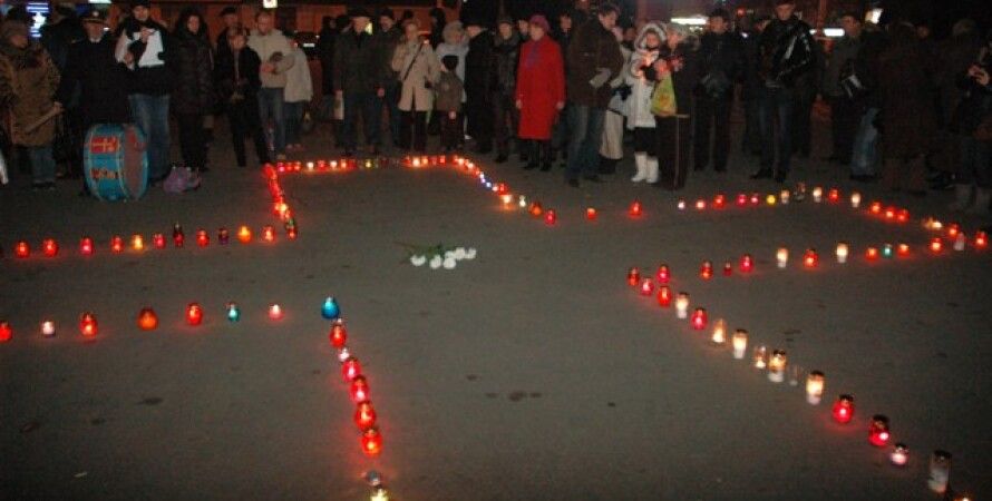 В Харькове в память о жертвах Голодомора 1932-1933 годов выложили два креста из зажженных свечей